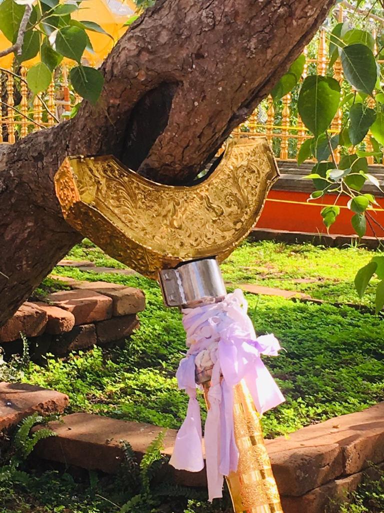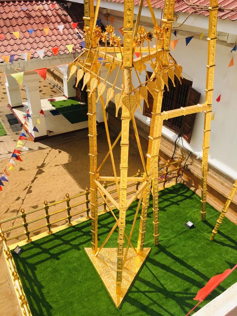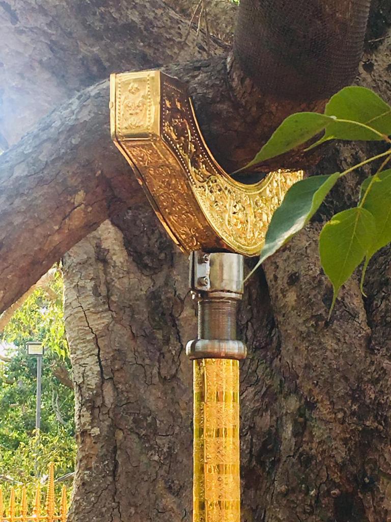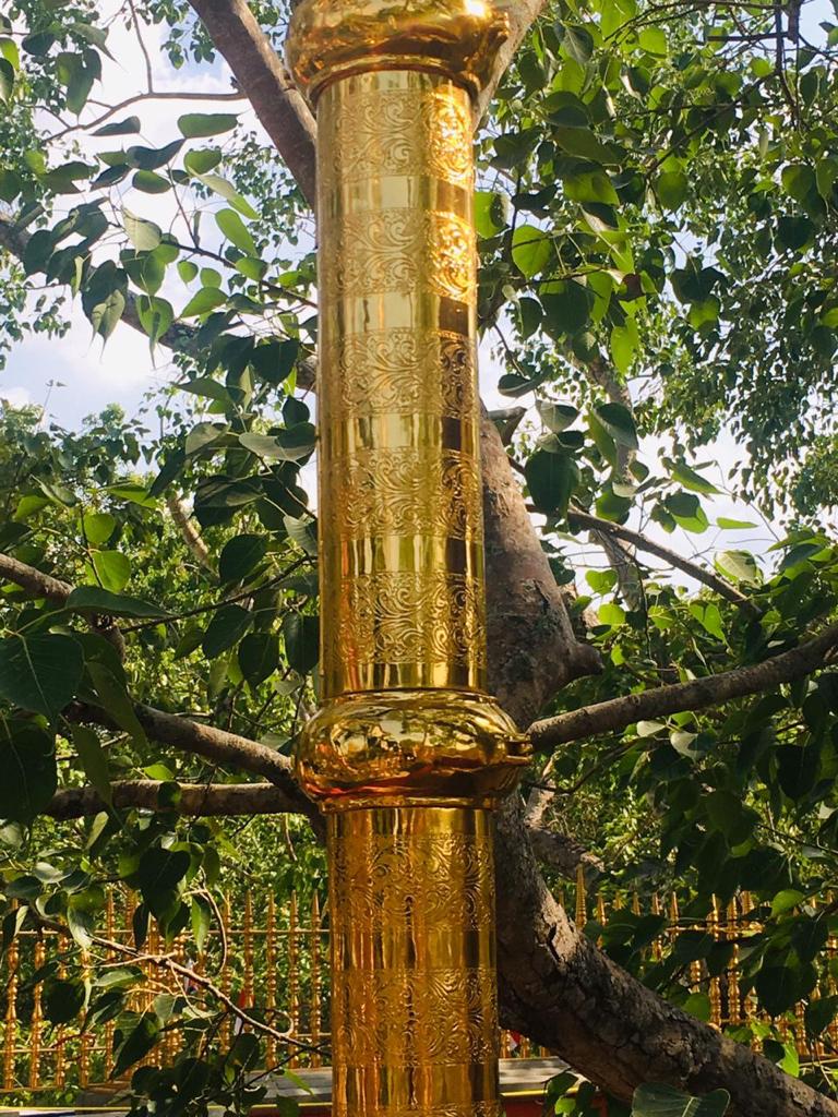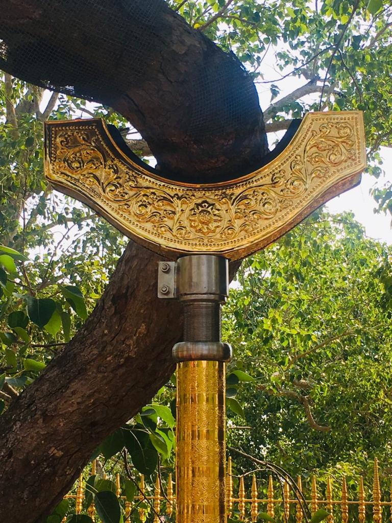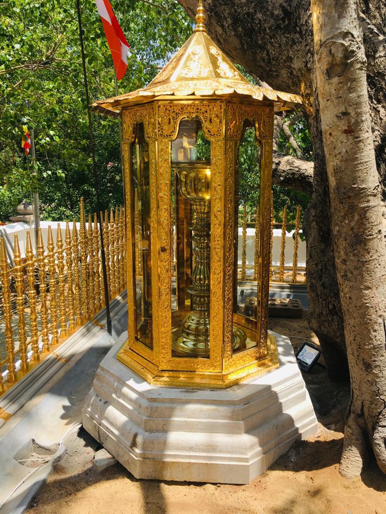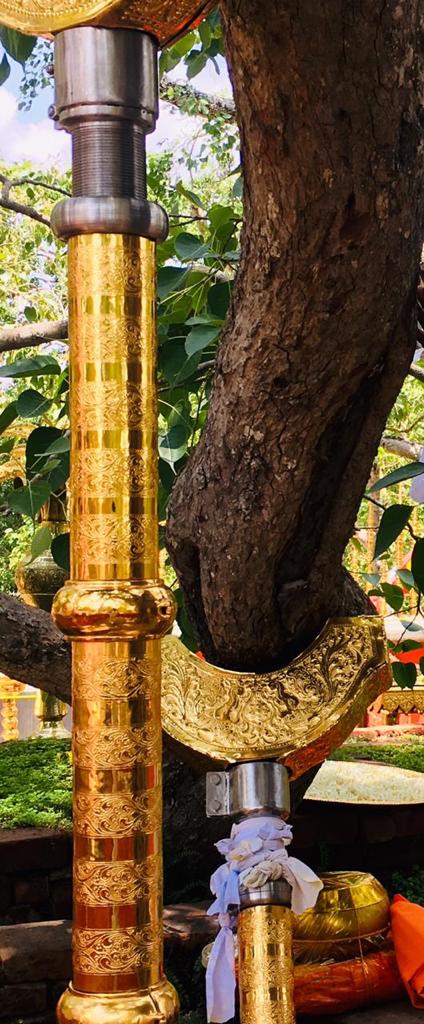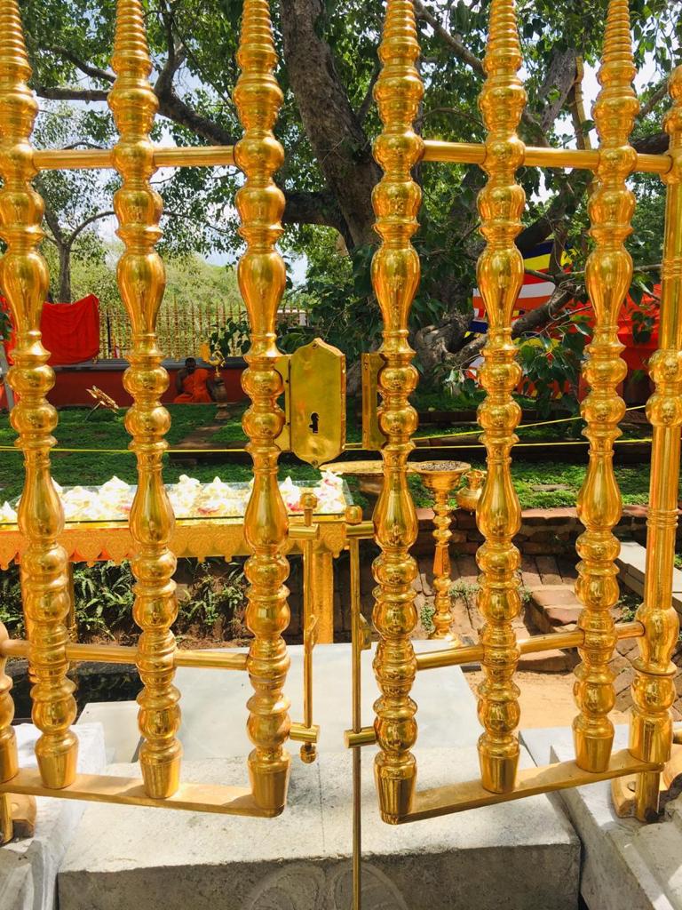 වැඩමවා වදාල අතිපූජනීය මහනුවර උපෝෂිත පුෂ්පාරාම විහාරෝද්ව්යාධිපති තිබ්බටුවේ ශ්රී සිද්ධාර්ථ සුමංගලාභිධාන මහා විහාර වංශික ශ්යාමෝපාලි මහා නිකායේ මල්වතු මහා විහාර පාර්ශවයේ ශ්රීමත් මහා නායක ස්වාමීන්ද්රියන් වහන්සේ සහ සියම් නිකායේ මල්වතු පාර්ශවයේ උතුරු මධ්යම පළාතේ ප්රධාන සංඝ නායක අටමස්ථානාධිපති ආචාර්ය සද්ධර්ම ජෝතික ධජ අති පූජනීය පල්ලේගම සිරි සුමන ධම්ම රක්ඛිත සිරි නිවාස නාහිමිපාණන් වහන්සේගේ ප්රධානත්වයෙන්, අතිපූජනීය ගම්පහ ප්රේමසිරි ස්වාමින් වහන්ස, අනුරාධපුර ප්රදේශ වාසි නායක ස්වාමීන් වහන්සේලාද, දඹදිව බුද්ධගයා විහාර කළමණාකාර කමිටුව නියෝජනය කරමින් අපගේ ආරාධනය පිළිගෙන මෙම ස්ථානයට වැඩමවා වදාල අතිපූජනීය ධර්මේන්ද්ර කුමාර් භික්ෂූන් වහන්සේගේ ද, එම කමිටුවේ ලේඛකාධිකාරී නැන්ග්සේ ඩොර්ජී මහතා ඇතුළු එම මහත්මියද ප්රමුඛ කොට ගත් ආරාධිත අමුත්තන්ගේ ද සහභාගීත්වයෙන් 2019 මැයි මස 11 වන දිනට යෙදුණු සුභ මොහොතින් බෝධීන් වහන්සේ වටා ඇති පළමු රන්වැට සහ දෙවන රන්වැට ද, බෝධීන් වහන්සේ දරා සිටින ආධාරක කණුද, පූජාවන් සිදුකිරීම සඳහා රන් ආලේපිත මල් ආසන තුනක් ද, බෝධීන් වහන්සේ ඉදිරිපිට ඇති නෙළුම්මල් සතර, පැන් කෙන්ඩිය, ගුරුලා සහ මල් පූජා කිරීම සඳහා ඇති තැටි රන් ආලේපිත කිරීම ද, රන් ආලේපිත ප්රතිසංස්කරණය කරන ලද දොළොස්මහේ පහන ද, බෝධීන් වහන්සේට බුද්ධ පූජාව, ගිලන් පස පූජා කිරීම සඳහා රන් ආලේපිත පාත්ර, රන් ආලේපිත තැටි, මල් බඳුන්, පැන් කෙන්ඩි ඇතුළු අංග සම්පුර්ණ පූජා භාණ්ඩ කට්ටලයන් පූජා කිරීමද සිදු වූයේ මෙලෙසිනි.