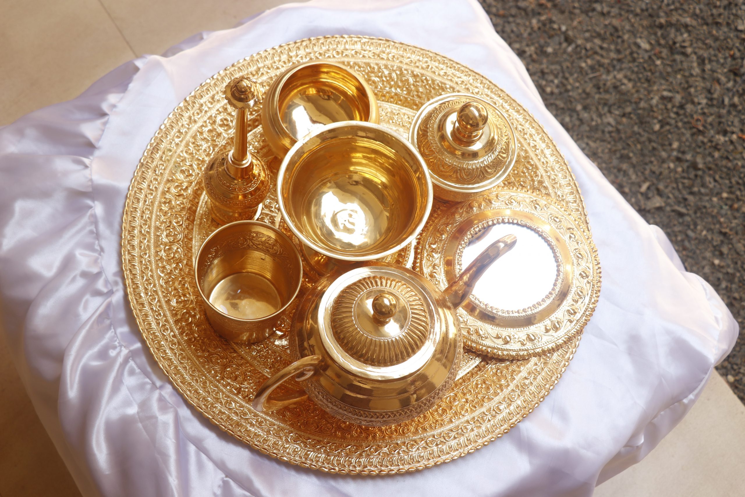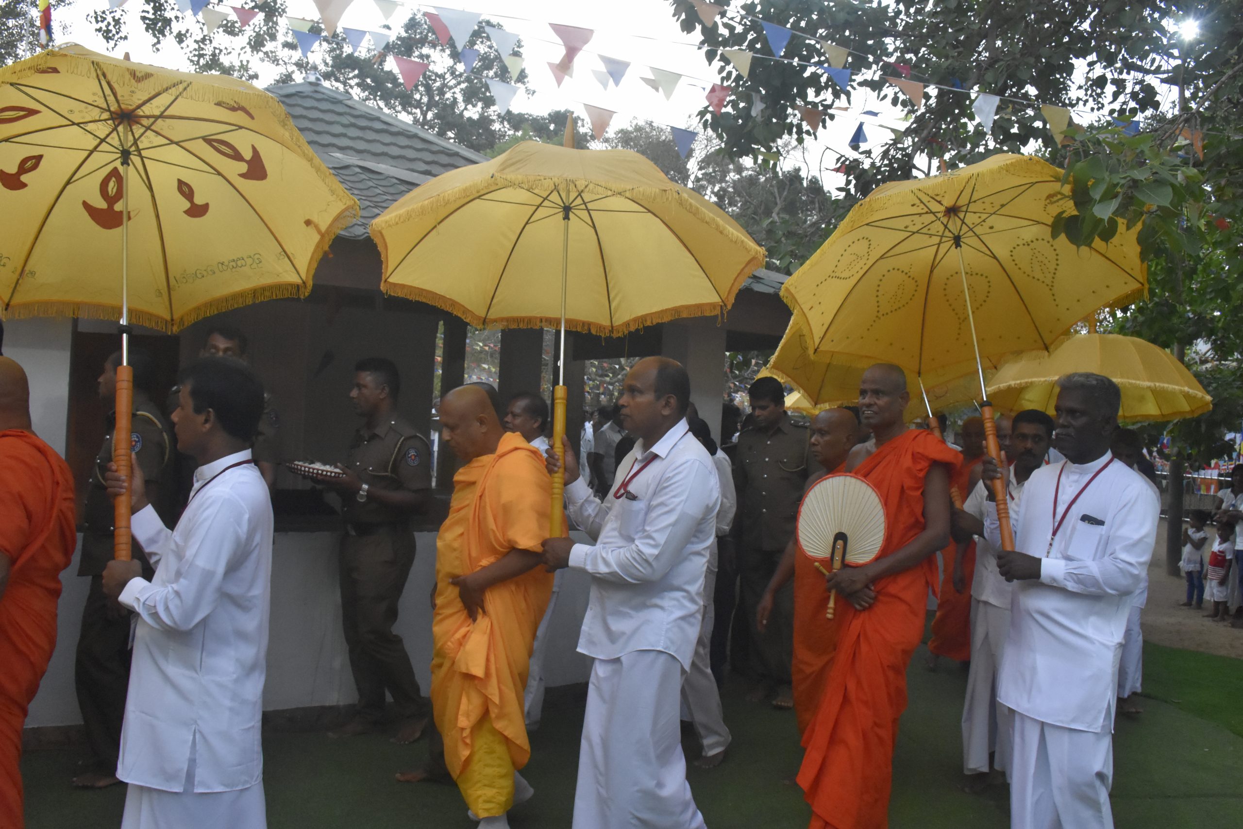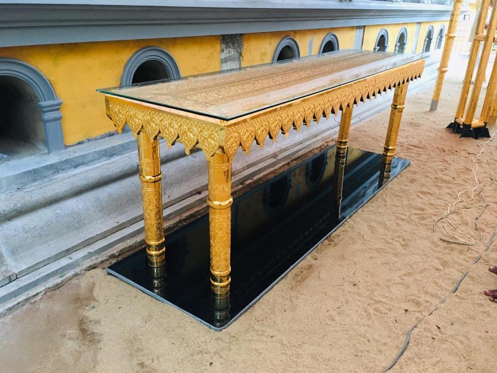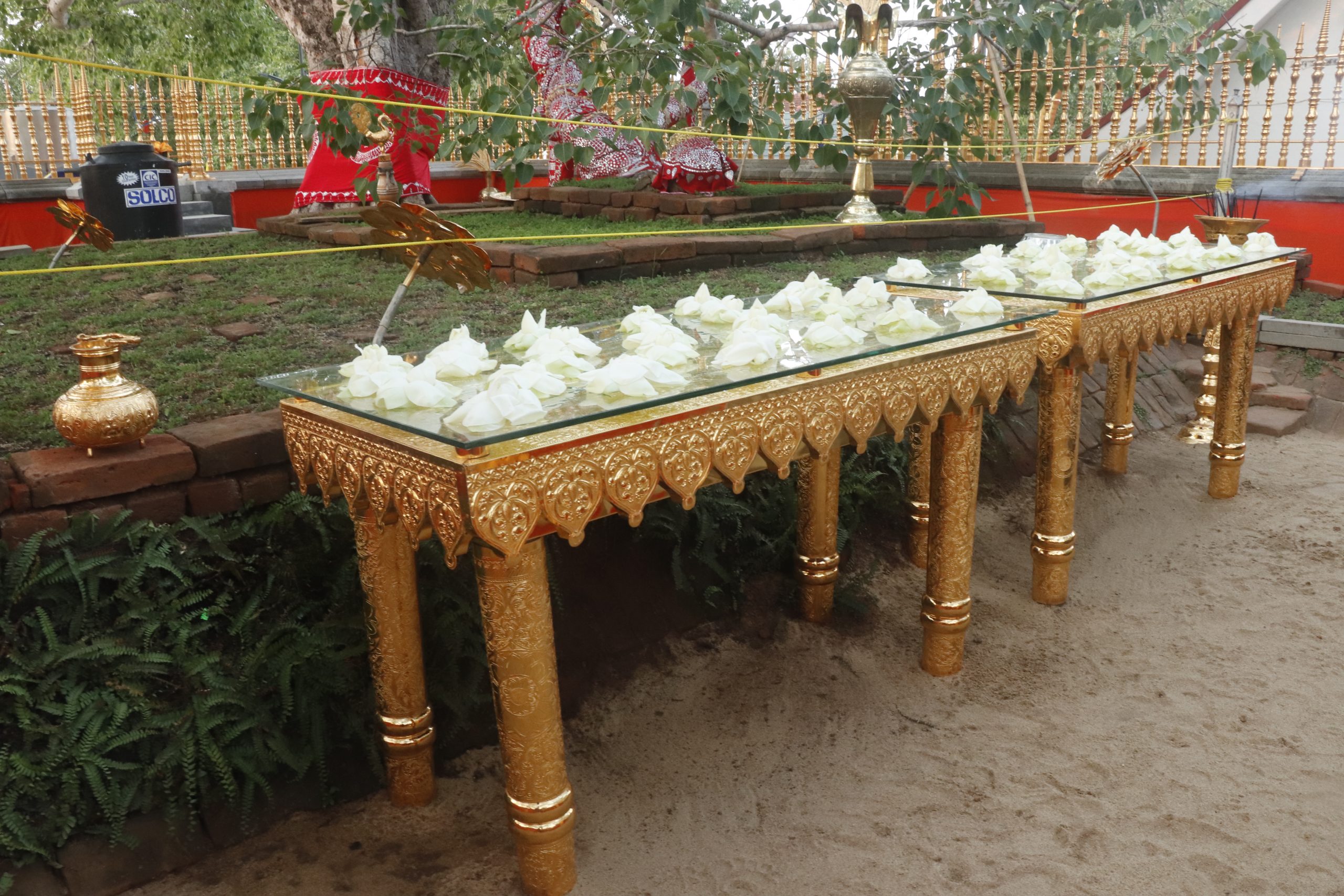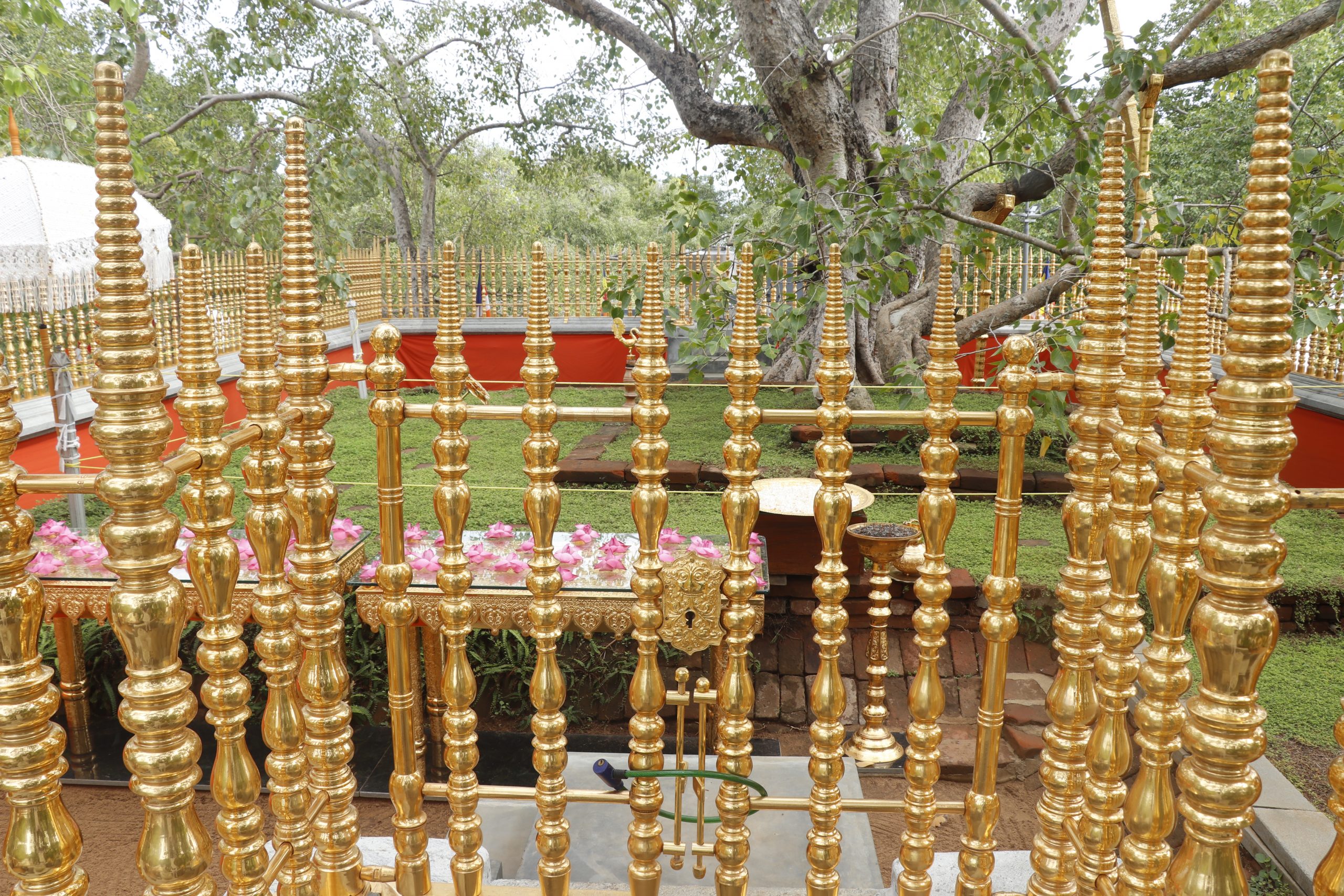 වැඩමවා වදාල අතිපූජනීය මහනුවර උපෝෂිත පුෂ්පාරාම විහාරෝද්ව්යාධිපති තිබ්බටුවේ ශ්රී සිද්ධාර්ථ සුමංගලාභිධාන මහා විහාර වංශික ශ්යාමෝපාලි මහා නිකායේ මල්වතු මහා විහාර පාර්ශවයේ ශ්රීමත් මහා නායක ස්වාමීන්ද්රියන් වහන්සේ සහ සියම් නිකායේ මල්වතු පාර්ශවයේ උතුරු මධ්යම පළාතේ ප්රධාන සංඝ නායක අටමස්ථානාධිපති ආචාර්ය සද්ධර්ම ජෝතික ධජ අති පූජනීය පල්ලේගම සිරි සුමන ධම්ම රක්ඛිත සිරි නිවාස නාහිමිපාණන් වහන්සේගේ ප්රධානත්වයෙන්, අතිපූජනීය ගම්පහ ප්රේමසිරි ස්වාමින් වහන්ස, අනුරාධපුර ප්රදේශ වාසි නායක ස්වාමීන් වහන්සේලාද, දඹදිව බුද්ධගයා විහාර කළමණාකාර කමිටුව නියෝජනය කරමින් අපගේ ආරාධනය පිළිගෙන මෙම ස්ථානයට වැඩමවා වදාල අතිපූජනීය ධර්මේන්ද්ර කුමාර් භික්ෂූන් වහන්සේගේ ද, එම කමිටුවේ ලේඛකාධිකාරී නැන්ග්සේ ඩොර්ජී මහතා ඇතුළු එම මහත්මියද ප්රමුඛ කොට ගත් ආරාධිත අමුත්තන්ගේ ද සහභාගීත්වයෙන් 2019 මැයි මස 11 වන දිනට යෙදුණු සුභ මොහොතින් බෝධීන් වහන්සේ වටා ඇති පළමු රන්වැට සහ දෙවන රන්වැට ද, බෝධීන් වහන්සේ දරා සිටින ආධාරක කණුද, පූජාවන් සිදුකිරීම සඳහා රන් ආලේපිත මල් ආසන තුනක් ද, බෝධීන් වහන්සේ ඉදිරිපිට ඇති නෙළුම්මල් සතර, පැන් කෙන්ඩිය, ගුරුලා සහ මල් පූජා කිරීම සඳහා ඇති තැටි රන් ආලේපිත කිරීම ද, රන් ආලේපිත ප්රතිසංස්කරණය කරන ලද දොළොස්මහේ පහන ද, බෝධීන් වහන්සේට බුද්ධ පූජාව, ගිලන් පස පූජා කිරීම සඳහා රන් ආලේපිත පාත්ර, රන් ආලේපිත තැටි, මල් බඳුන්, පැන් කෙන්ඩි ඇතුළු අංග සම්පුර්ණ පූජා භාණ්ඩ කට්ටලයන් පූජා කිරීමද සිදු වූයේ මෙලෙසිනි.