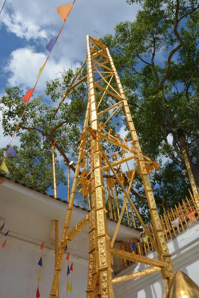 රන් පාදම සහිත නව චූඩා මාණික්යය ස්වර්ණමාලී මහා සෑ රදුන් මත තැන්පත් කිරීම සහ රන් ආලේපිත කොත් වහන්සේ න…