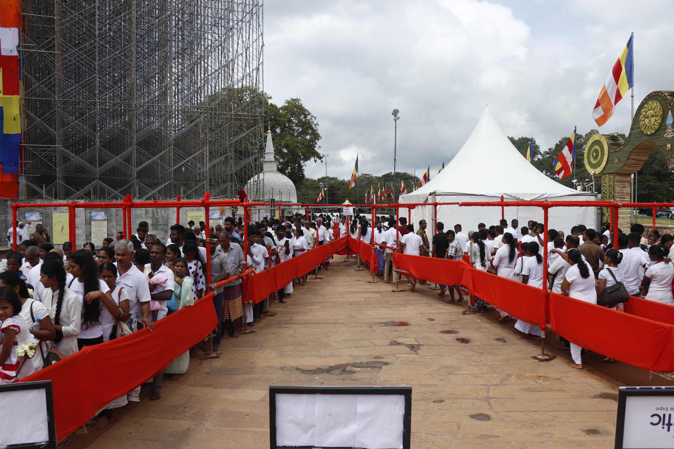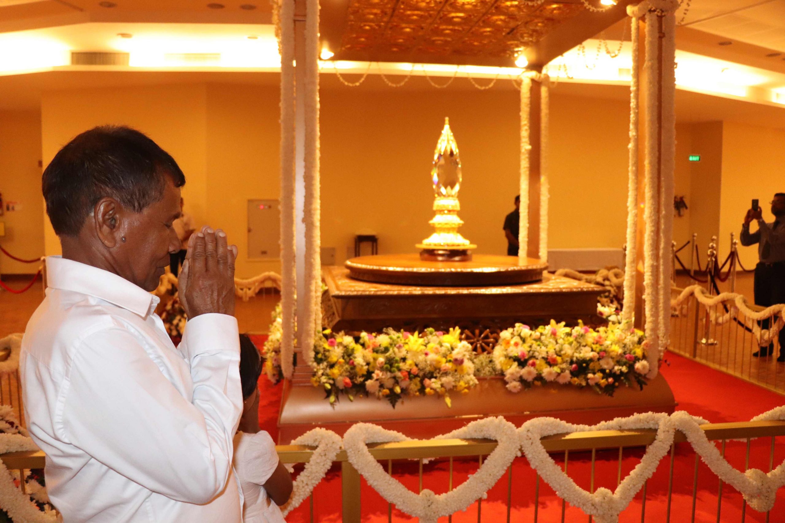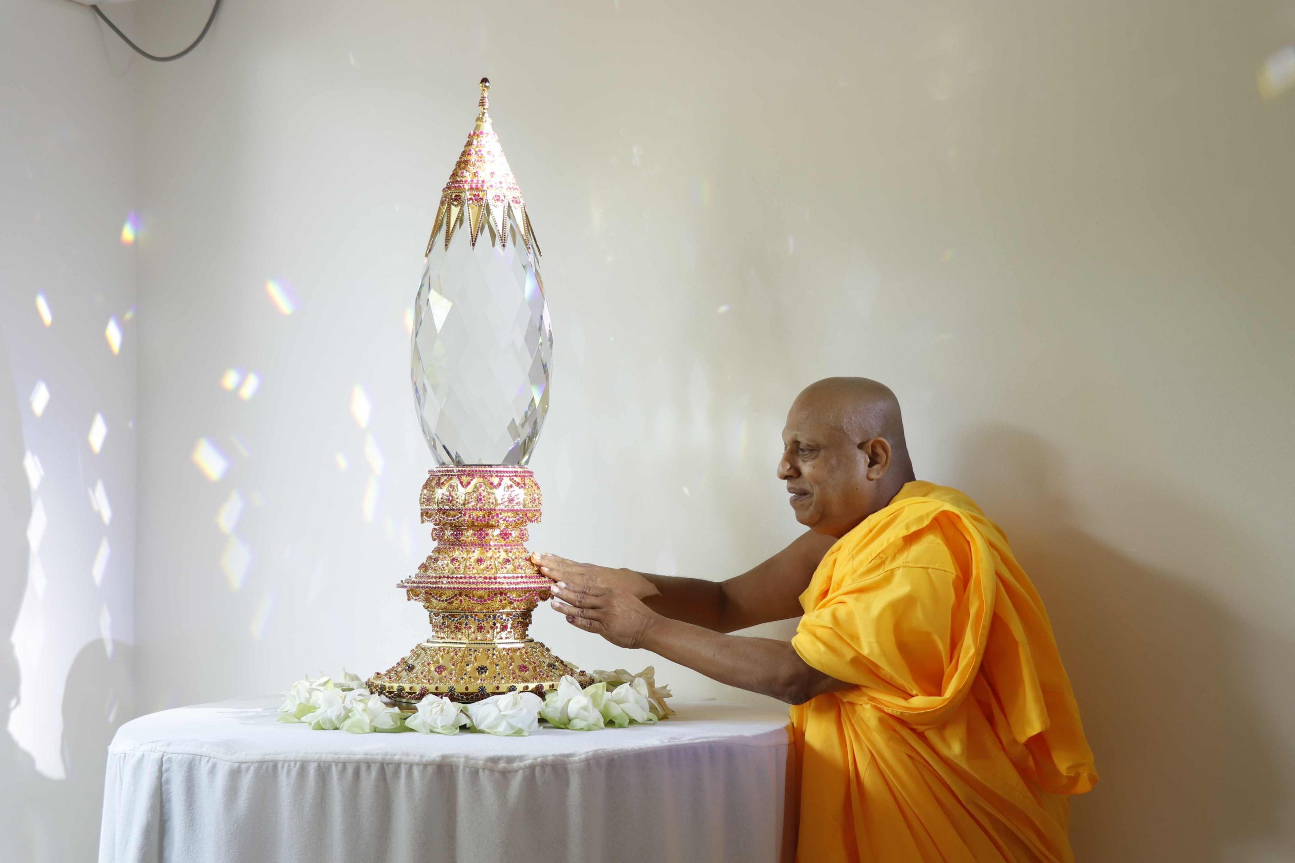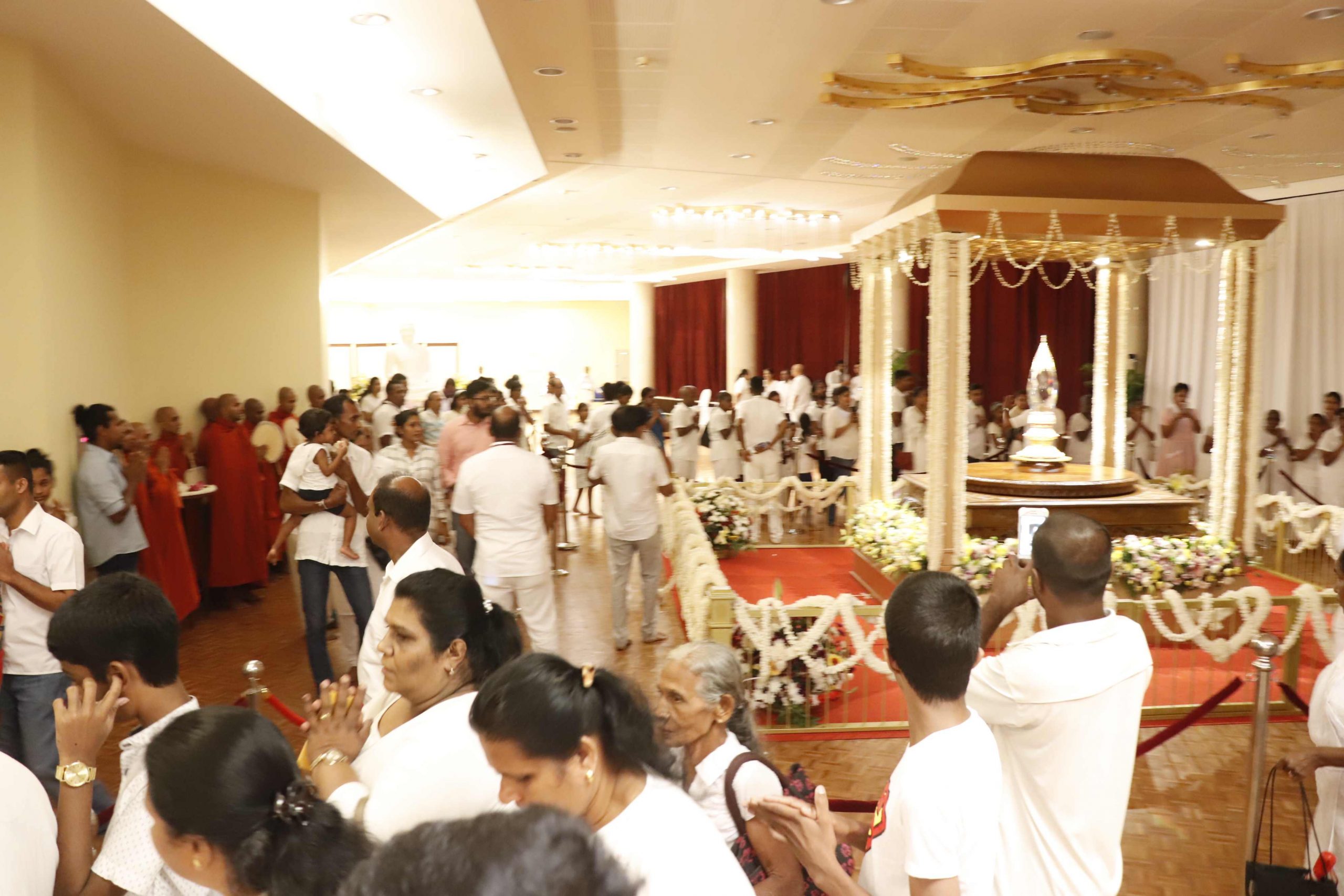 එම අනුමැතිය දොහොත් මුදුනින් පිළිගත් විශ්ව පාරමී පදනම ස්වභාවික මැණික් ගල් 5320 කින් යුත් දඹ රනින් නිම කළ රන් පාදම සහිත ඔස්ට්රියාවේ නිපදවන ලද දියමන්ති වලට නොදෙවෙනි රොක් ක්රිස්ටල් නම් පාෂාණයෙන් නිපදවන ලද චූඩා මාණික්යය නොවැම්බර් මස 18 වන දින සිට 20 වන දින දක්වා කොළඹ බණ්ඩාරනායක සම්මන්ත්රණ ශාලාවෙත් නොවැම්බර් මස 21 සහ 22 දෙදින පුරා කුරුණෑගල ඇත්කඳ විහාරයේත් 22 වන දින පස්වරුවේ සිට 25 වන දින පෙරවරුව දක්වා ස්වර්ණමාලී සෑ රඳුන් අභියසත් ලක්ෂ සංඛ්යාත සැදැහැවත් ජනතාවගේ වන්දනාවට ඉඩ සලසා දුන් අතර මෙයට සමගාමීව ගෞරවණිය සංඝරත්නය විසින් 24 වන දින රාත්රියේ සිට 26 වන දින උදෑසන දක්වා තුන් තිස් පැයේ පිරිත් සජ්ඣායනාව පවත්වන ලදී.