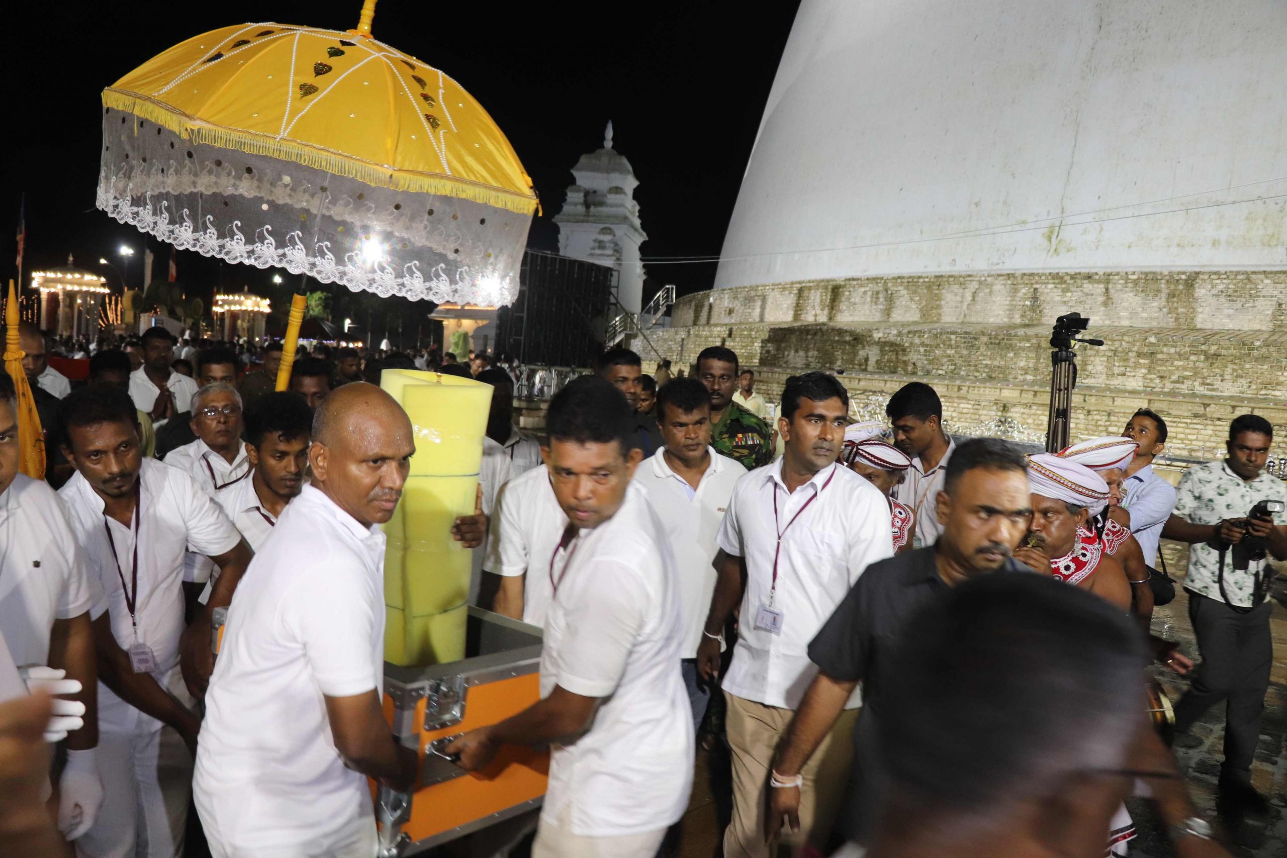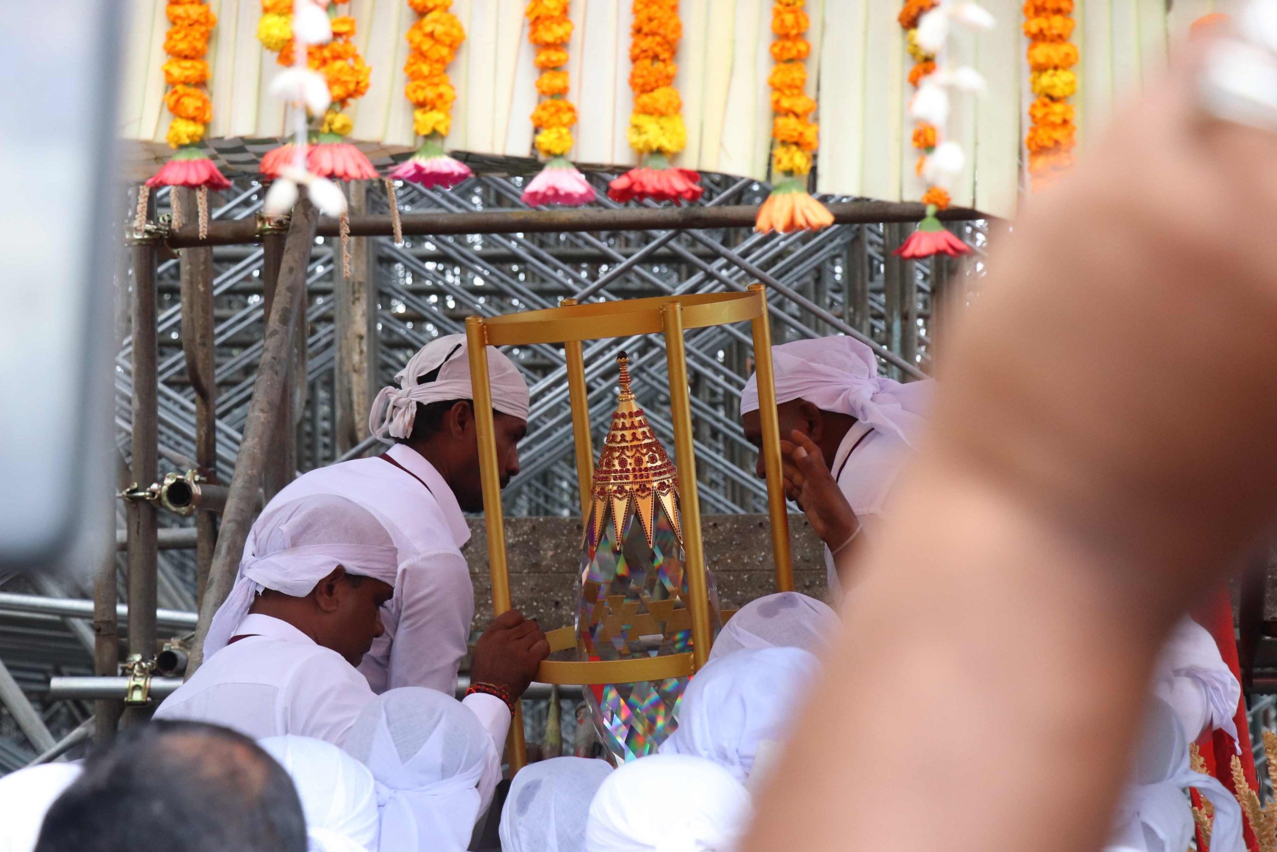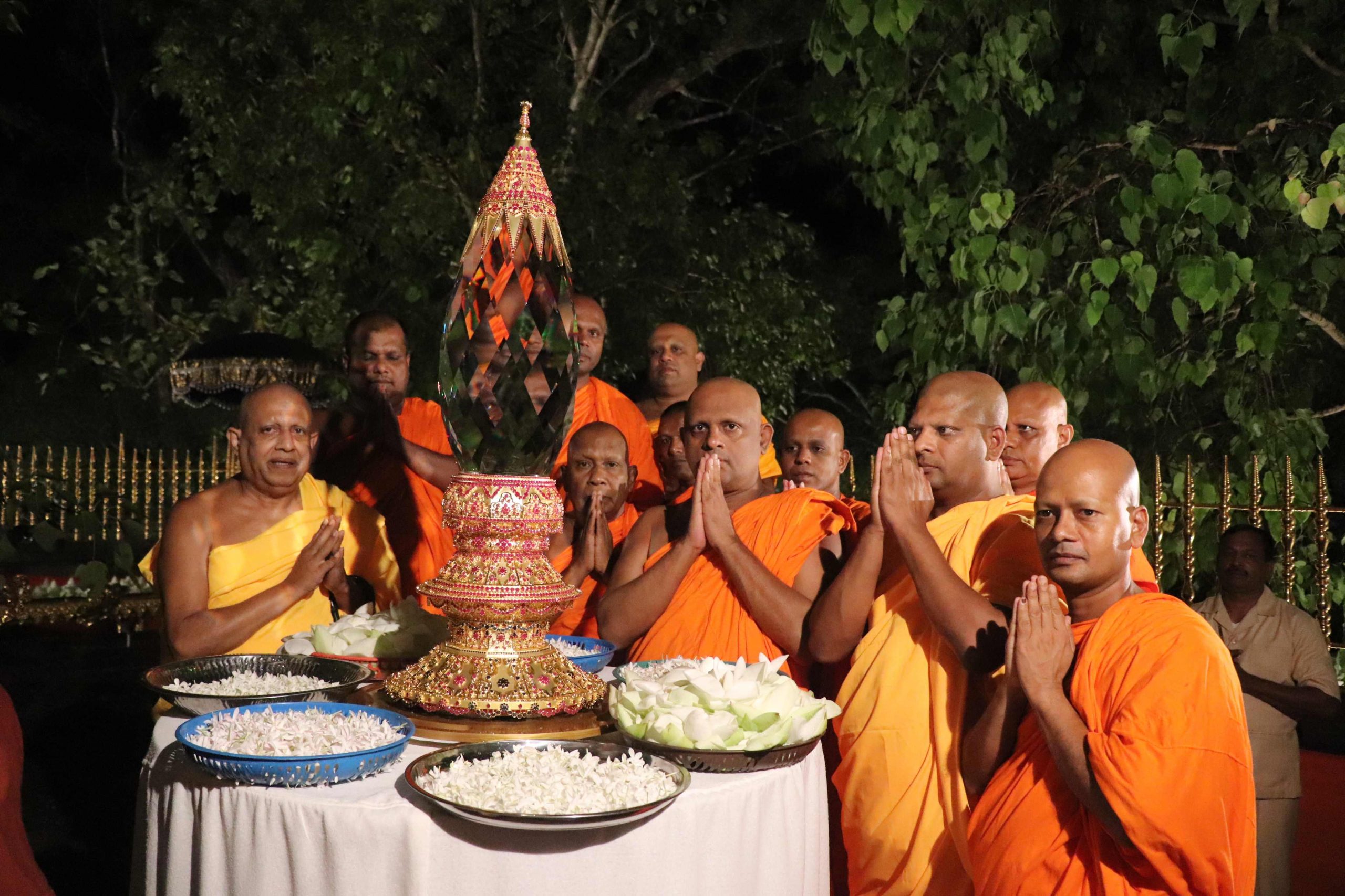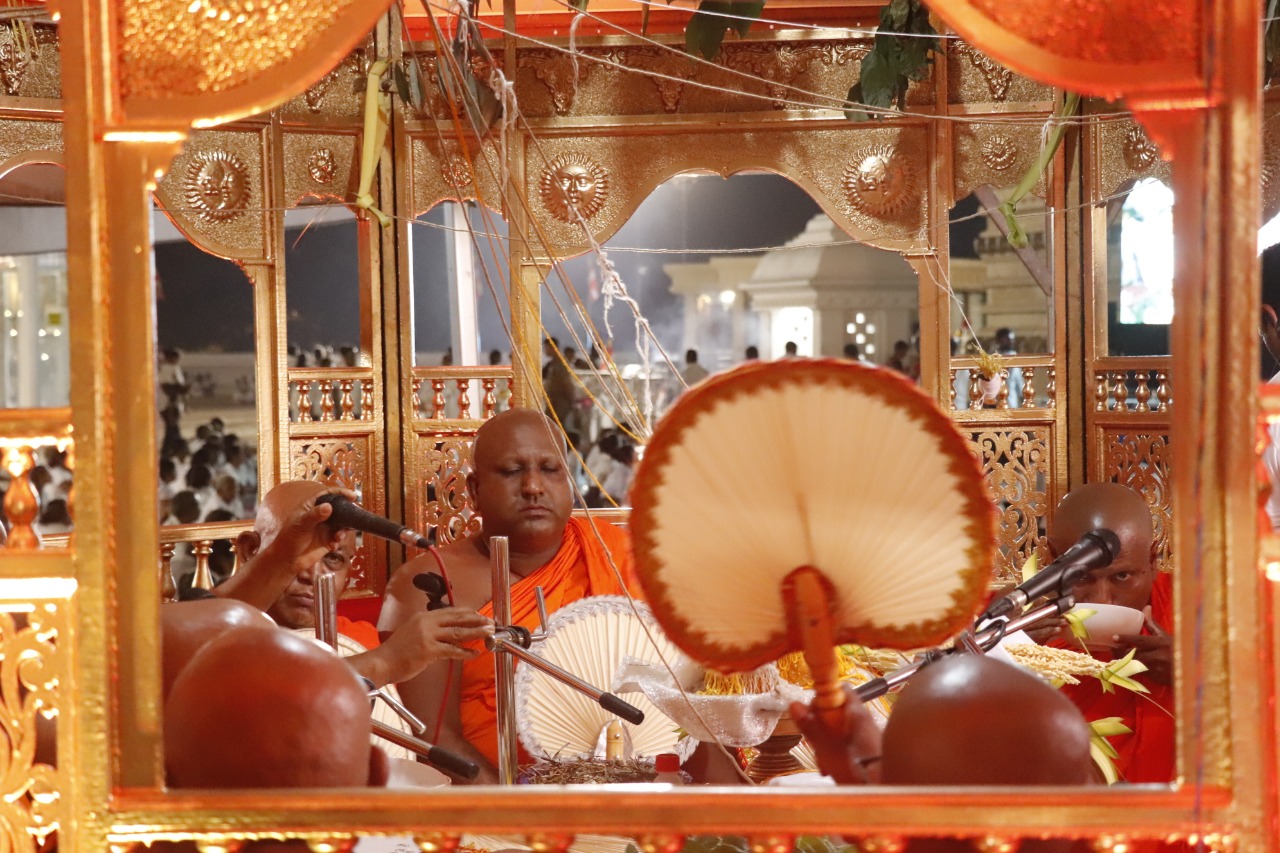 රන් පාදම සහිත නව චූඩා මාණික්යය ස්වර්ණමාලී මහා සෑ රදුන් මත තැන්පත් කිරීම සහ රන් ආලේපිත කොත් වහන්සේ න…